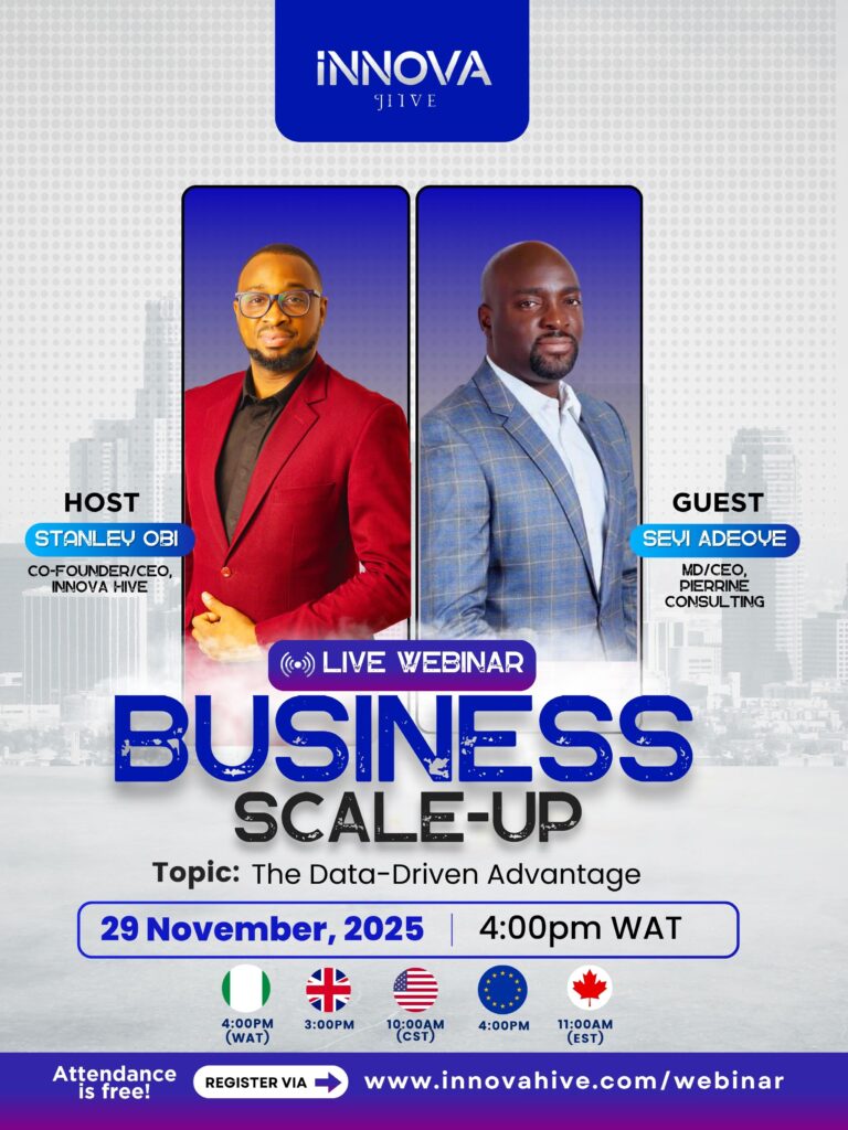 by Stanley Obi, Co-Founder & CEO of Innova Hive, with guest Seyi Adeoye, MD/CEO of Pierrine Consulting, this session will give you actionable strategies to accelerate your business growth in 2025 and beyond.